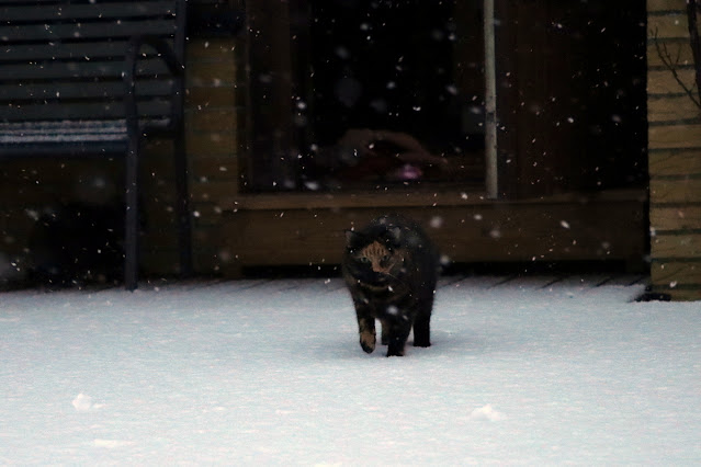 Okej vi kanske överdriver lite men igår eftermiddag som kom det massor av snö. Samtidigt som det började blåsa och snöa ännu mer. Vi tjejer gick ut och kollade lite men det är ju kallt. Fast lite busigt också. Man undrar ju om man kan fånga de där flingorna men det är verkligen inte lätt. Speciellt inte när det blåser!