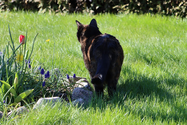 Här hade vi en lugn morgonstund och helt plötsligt blev det kaos. Rätt som det var så satt Spetsnäsan utanför fönstret. Bagheera blev jättearg och Spetsnäsan också. Tur de var på varsin sida fönstret. Sen kom Lea och fattade inte vem som var vem utan skällde ut Bagheera som hon trodde var Spetsnäsan. Turligt nog kom Röran och redde ut det hela så vi kunde gå tillbaka till vår lugna morgonstund!